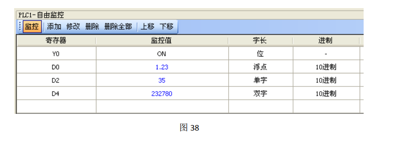值輸出)為例,相應(yīng)的 PLC 監(jiān)控畫面如圖 38 所示。