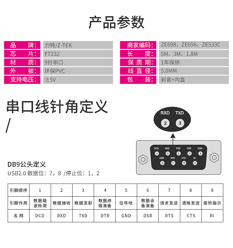 煙臺(tái) USB轉(zhuǎn)串口232標(biāo)準(zhǔn)線 9u針口 z-tek力特usb轉(zhuǎn)串口線rs232c公母頭db9針com