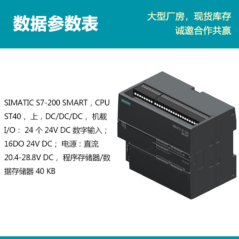 型號 6ES7288-1ST40-0AA0 S7-200 SMART CPU ST40 DC/DC/DC 24輸入/16晶體管輸出