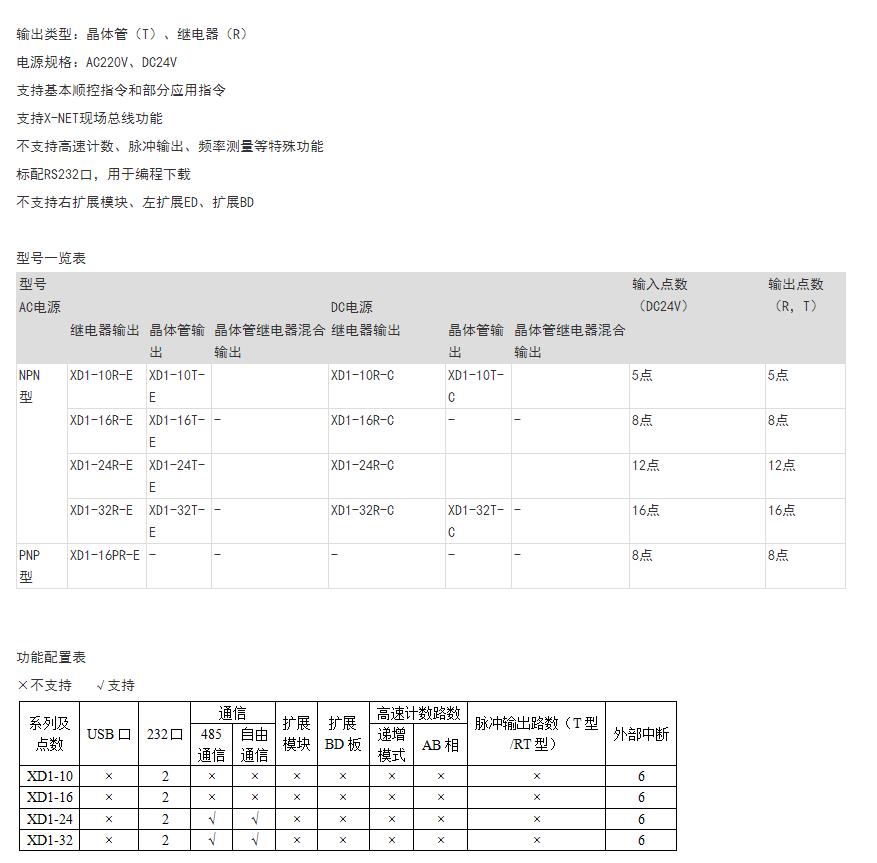 • 信捷PLC XD1 系列主 型號XD1-10T-E