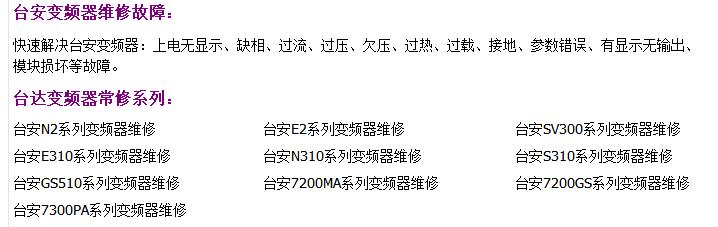 專業(yè)維修臺安變頻器變頻器,承接全國臺安變頻器維修業(yè)務和煙臺及周邊地區(qū)的安裝調試業(yè)務。我們將用精湛的技術、優(yōu)質的服務為您排憂解難!
