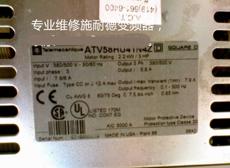 山東 煙臺Schneider施耐德變頻器ATV58HU41N4Z維修 施耐德2.2KW變頻器維修 山東 煙臺Schneider施耐德變頻器ATV58HU41N4Z維修 施耐德2.2KW變頻器維修