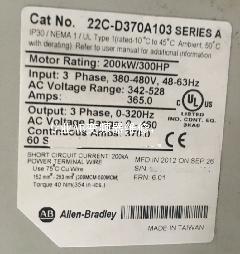 山東 煙臺Allen-Bradley變頻器22C-D370A103維修 AB 200kw/300HP變頻器維修山東 煙臺Allen-Bradley變頻器22C-D370A103維修 AB 200kw/300HP變頻器維修山東 煙臺Allen-Bradley變頻器22C-D370A103維修 AB 200kw/300HP變頻器維修